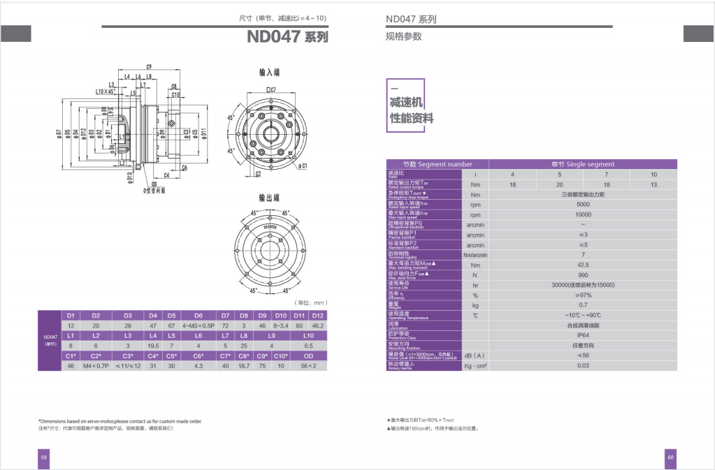 ND047系列超精密背隙行星减速机系列:ND047系列精密背隙行星减速器系列:ND047系列标准背隙行星减速机系列: