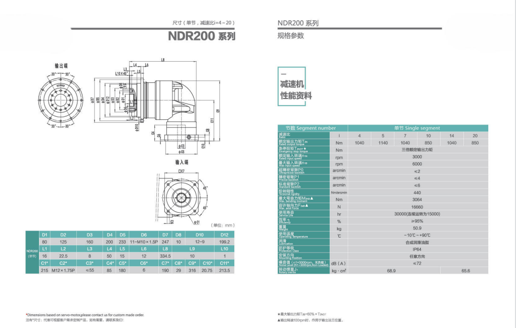 NDR200系列超精密背隙行星减速机系列(P0): NDR200系列精密背隙行星减速器系列(P1): NDR200系列标准背隙行星减速机系列(P2):