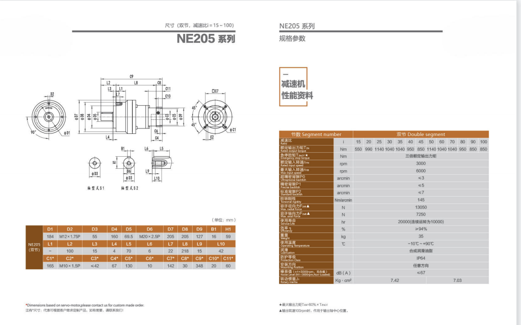 NE205系列超精密背隙行星减速机系列(P0): NE205系列精密背隙行星减速器系列(P1): NE205系列标准背隙行星减速机系列(P2):