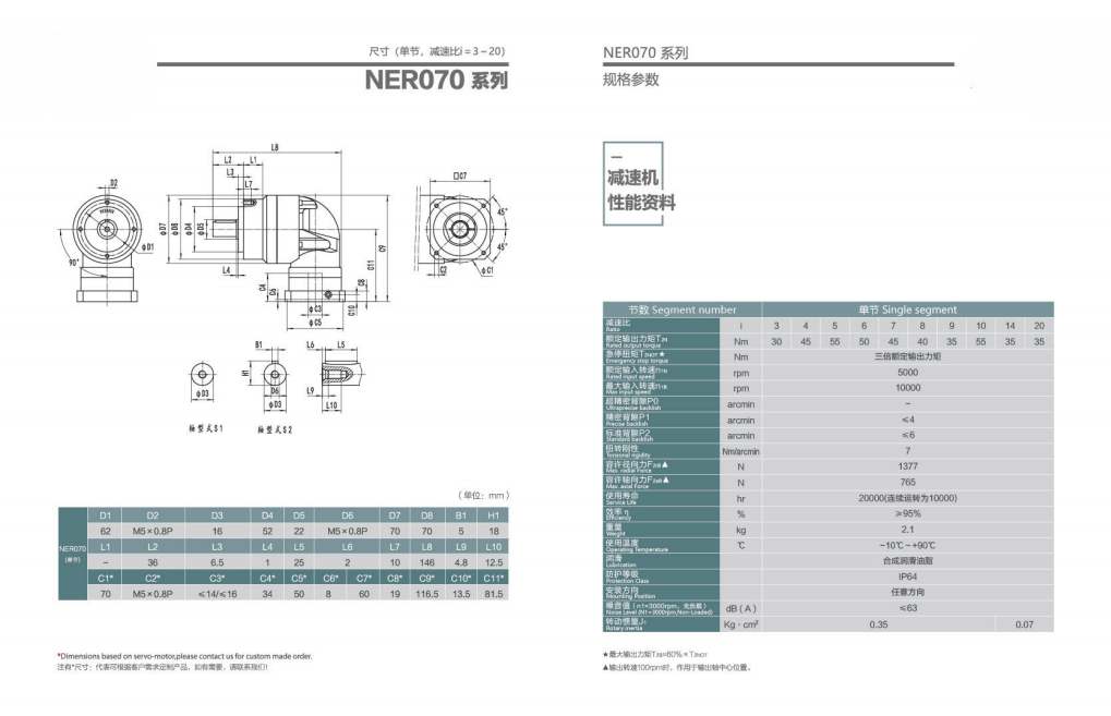 NER070系列超精密背隙行星减速机系列(P0): NER070系列精密背隙行星减速器系列(P1): NER070系列标准背隙行星减速机系列(P2):