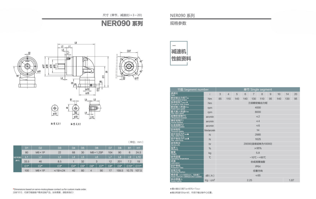 NER090系列超精密背隙行星减速机系列(P0): NER090系列精密背隙行星减速器系列(P1): NER090系列标准背隙行星减速机系列(P2):