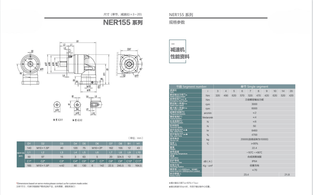 NER155系列超精密背隙行星减速机系列(P0): NER155系列精密背隙行星减速器系列(P1): NER155系列标准背隙行星减速机系列(P2):