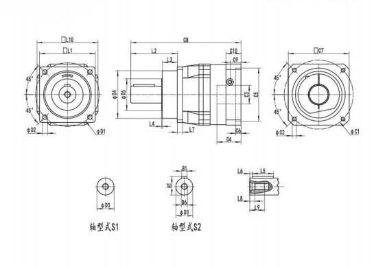 NF100系列精密行星减速器型号尺寸与图纸