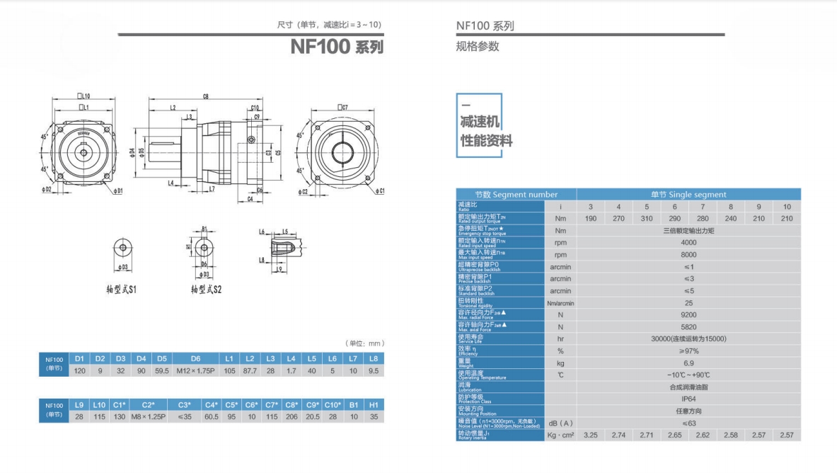 爱彩88 NF100系列超精密背隙行星减速机系列(P0): NF100系列精密背隙行星减速器系列(P1): NF100系列标准背隙行星减速机系列(P2):