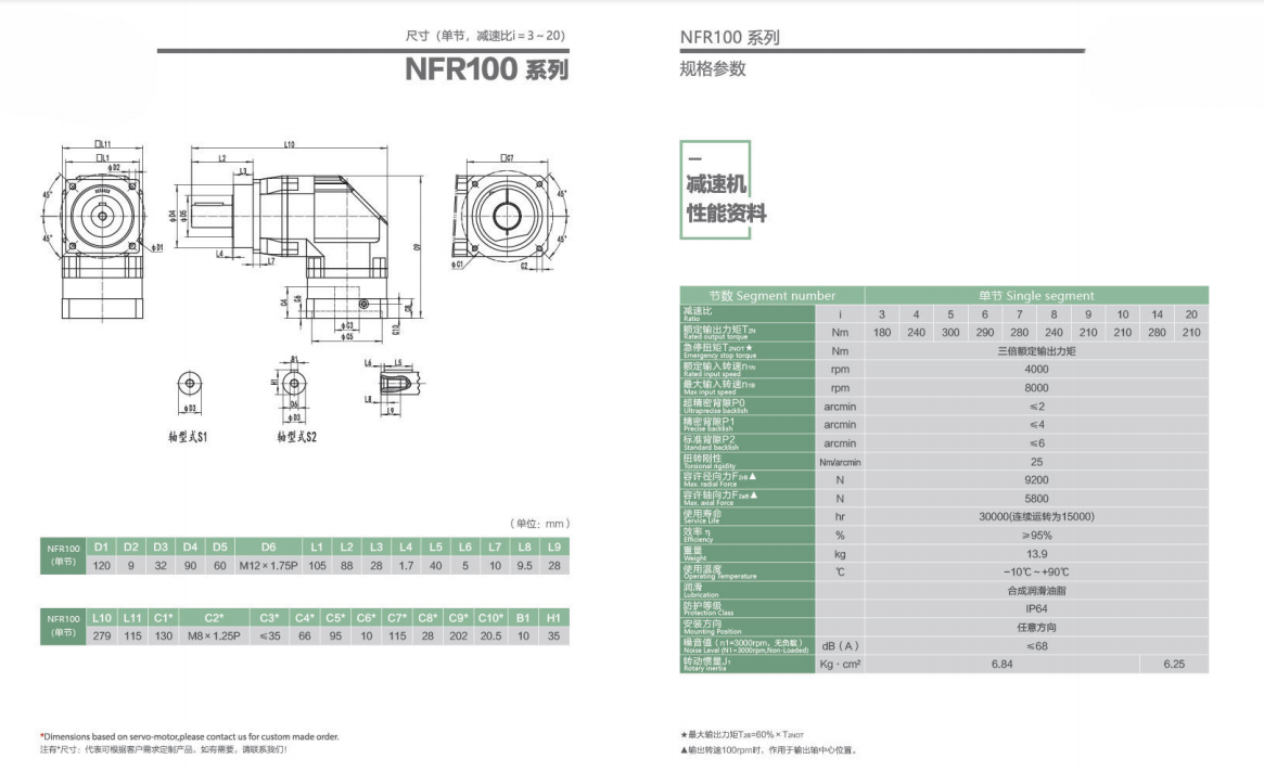 NFR100系列超精密背隙行星减速机系列(P0): NFR100系列精密背隙行星减速器系列(P1): NFR100系列标准背隙行星减速机系列(P2):