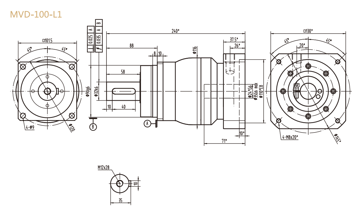 MVD-100-L1系列精密行星减速器型号尺寸与图纸
