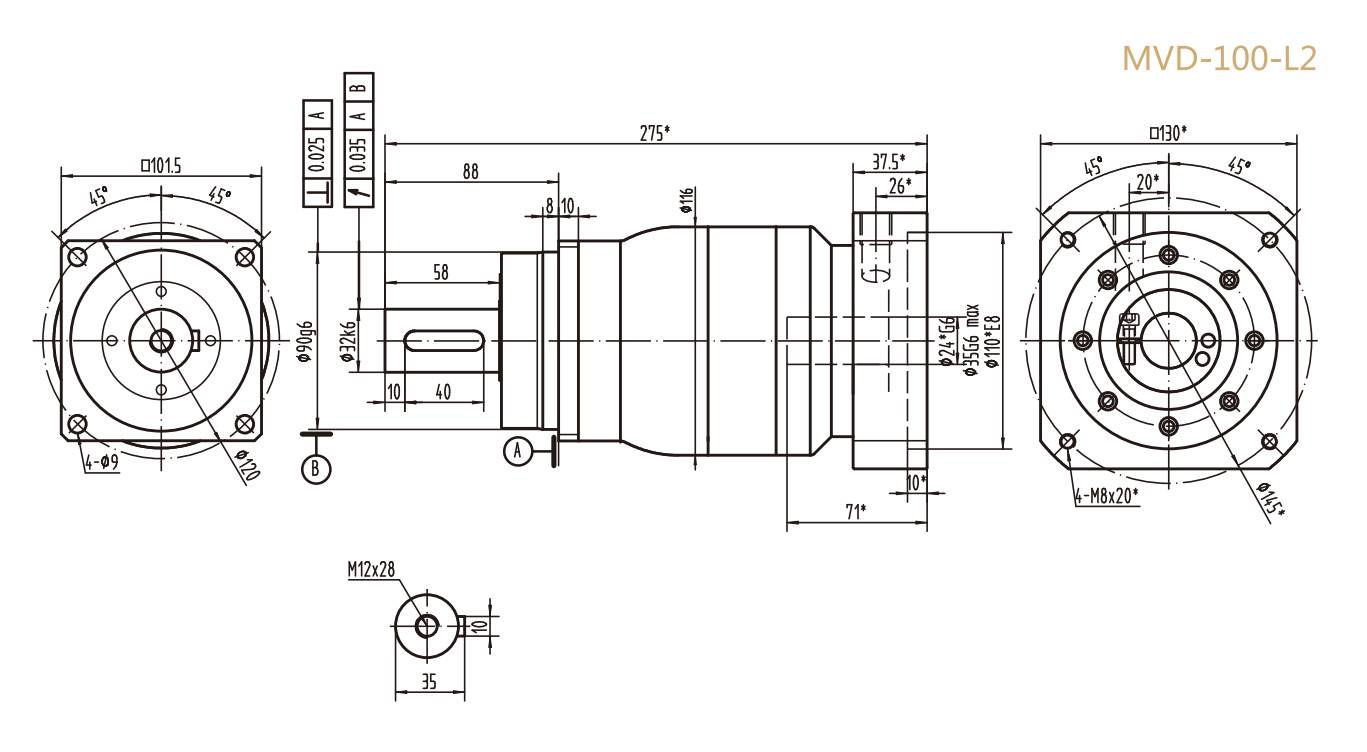 MVD-100-L2系列精密行星减速器型号尺寸与图纸