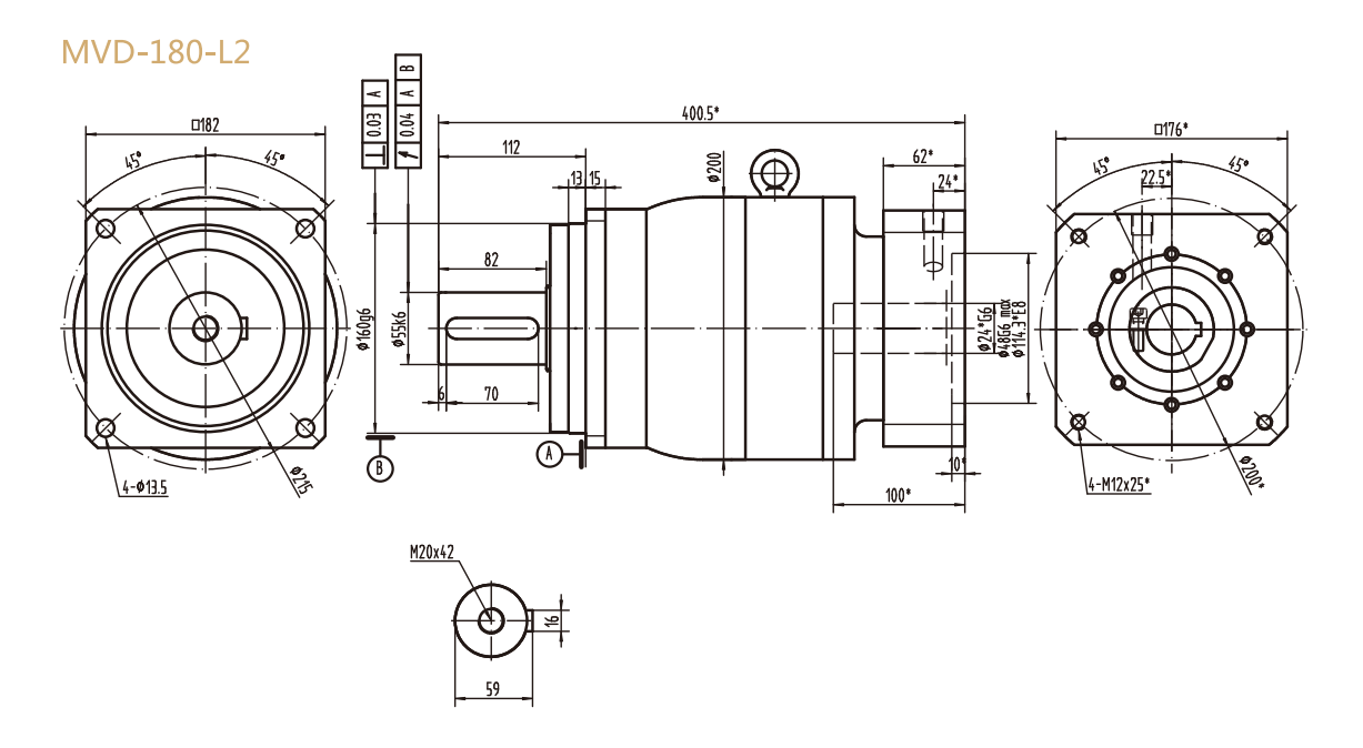 MVD-180-L2系列精密行星减速器型号尺寸与图纸