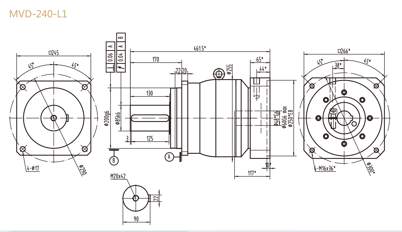 MVD-240-L1系列精密行星减速器型号尺寸与图纸