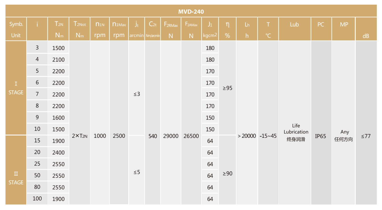 MVD-240-L1系列超精密背隙行星减速机系列(P0): MVD-240-L1系列精密背隙行星减速器系列(P1): MVD-240-L1系列标准背隙行星减速机系列(P2):