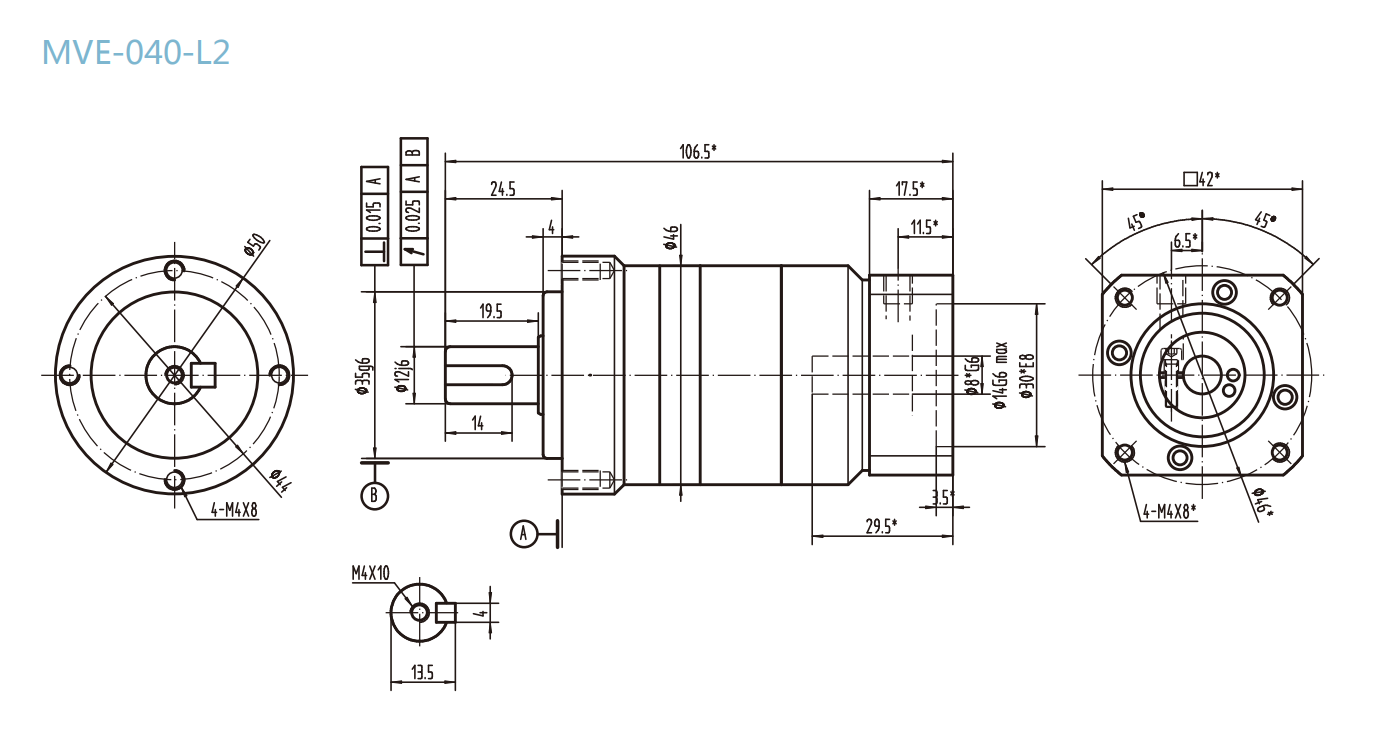 MVE-040-L2系列精密行星减速器型号尺寸与图纸