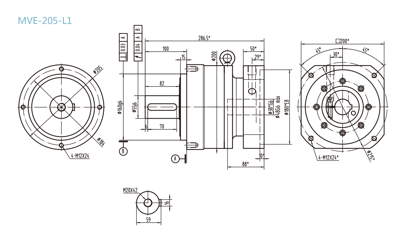MVE-205-L1系列精密行星减速器型号尺寸与图纸