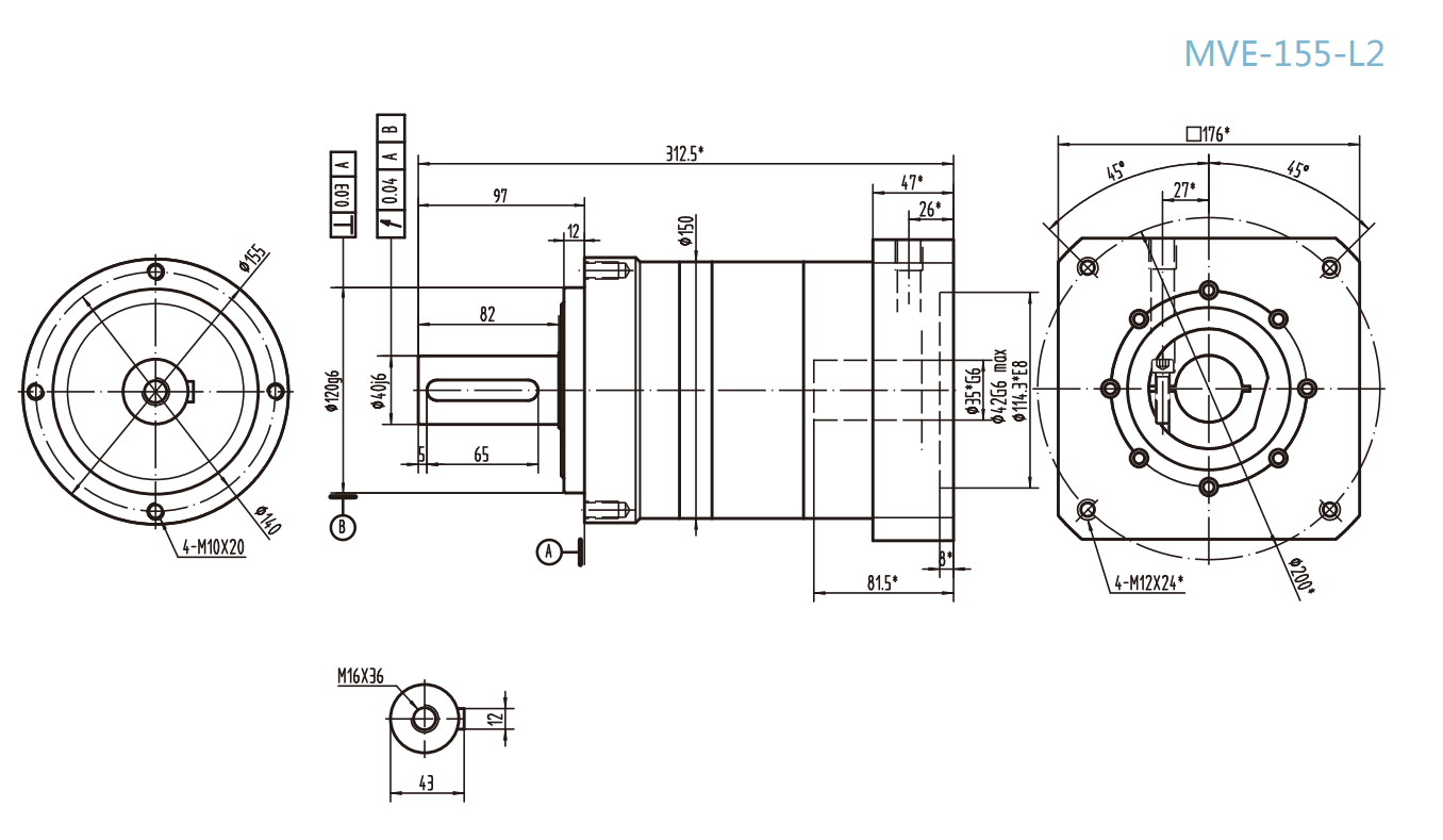 MVE-155-L2系列精密行星减速器型号尺寸与图纸