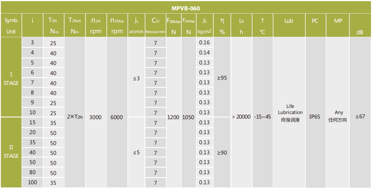 MPVB-060A-L1系列超精密背隙行星减速机系列(P0): MPVB-060A-L1系列精密背隙行星减速器系列(P1): MPVB-060A-L1系列标准背隙行星减速机系列(P2):