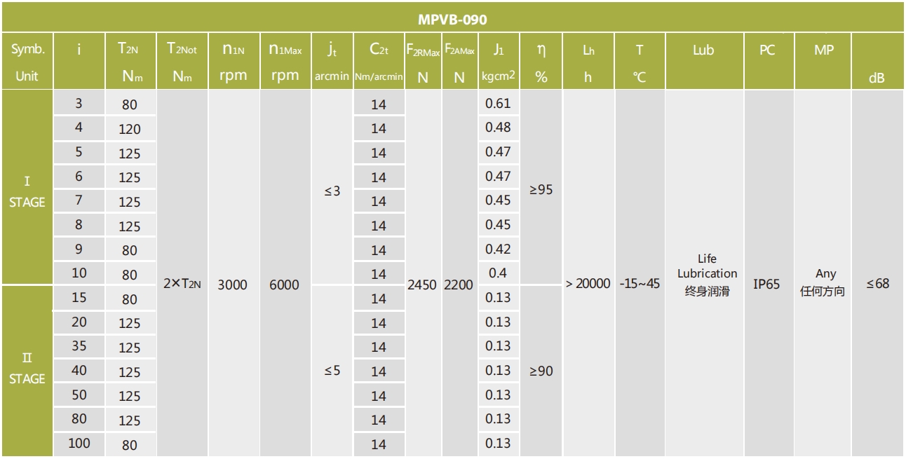 MPVB-090B-L1系列超精密背隙行星减速机系列(P0): MPVB-090B-L1系列精密背隙行星减速器系列(P1): MPVB-090B-L1系列标准背隙行星减速机系列(P2):