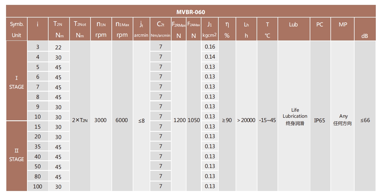 MVBR-060-L1系列超精密背隙行星减速机系列(P0): MVBR-060-L1系列精密背隙行星减速器系列(P1): MVBR-060-L1系列标准背隙行星减速机系列(P2):
