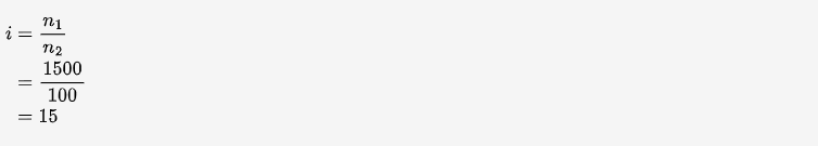 假设输入转速为 1500 r/min,要求输出转速为 100 r/min,则减速比为: