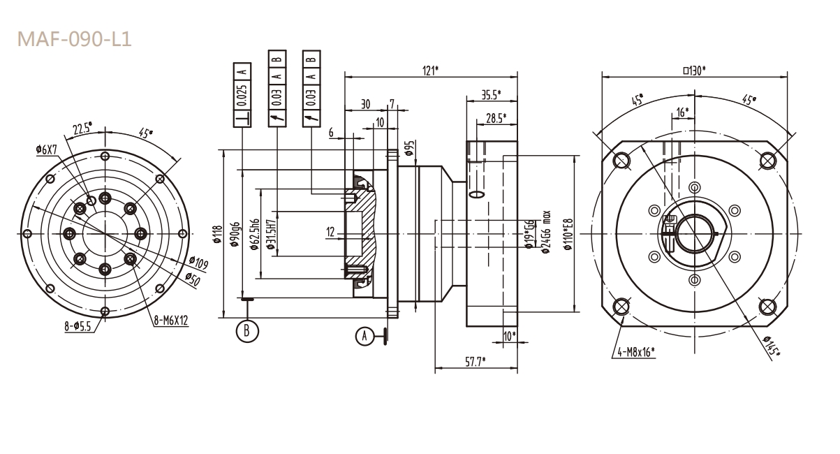 MAF-090-L1系列精密行星减速器型号尺寸与图纸