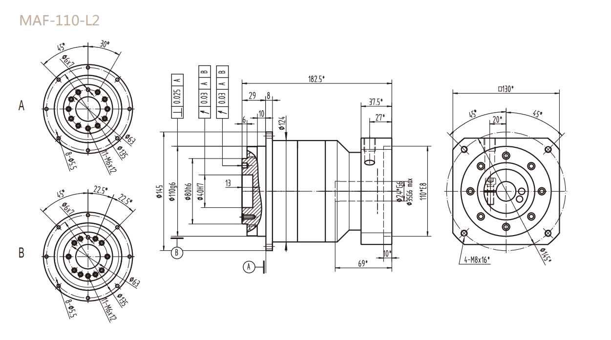 MAF-110-L2系列精密行星减速器型号尺寸与图纸