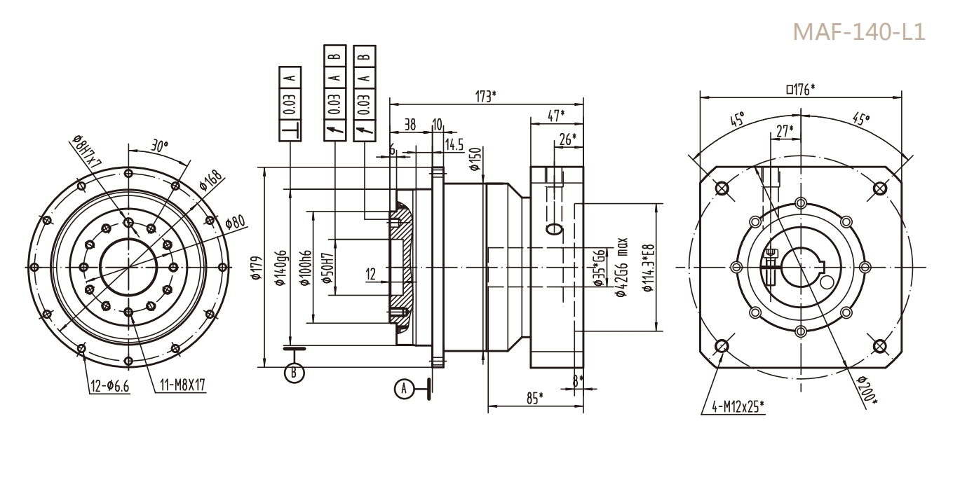 MAF-140-L1系列精密行星减速器型号尺寸与图纸