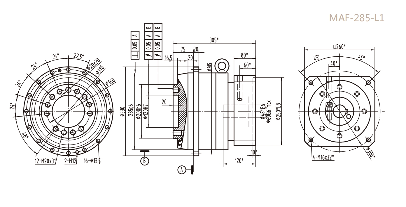 MAF-285-L1系列精密行星减速器型号尺寸与图纸