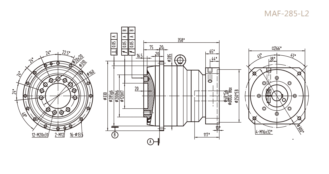 MAF-285-L2系列精密行星减速器型号尺寸与图纸
