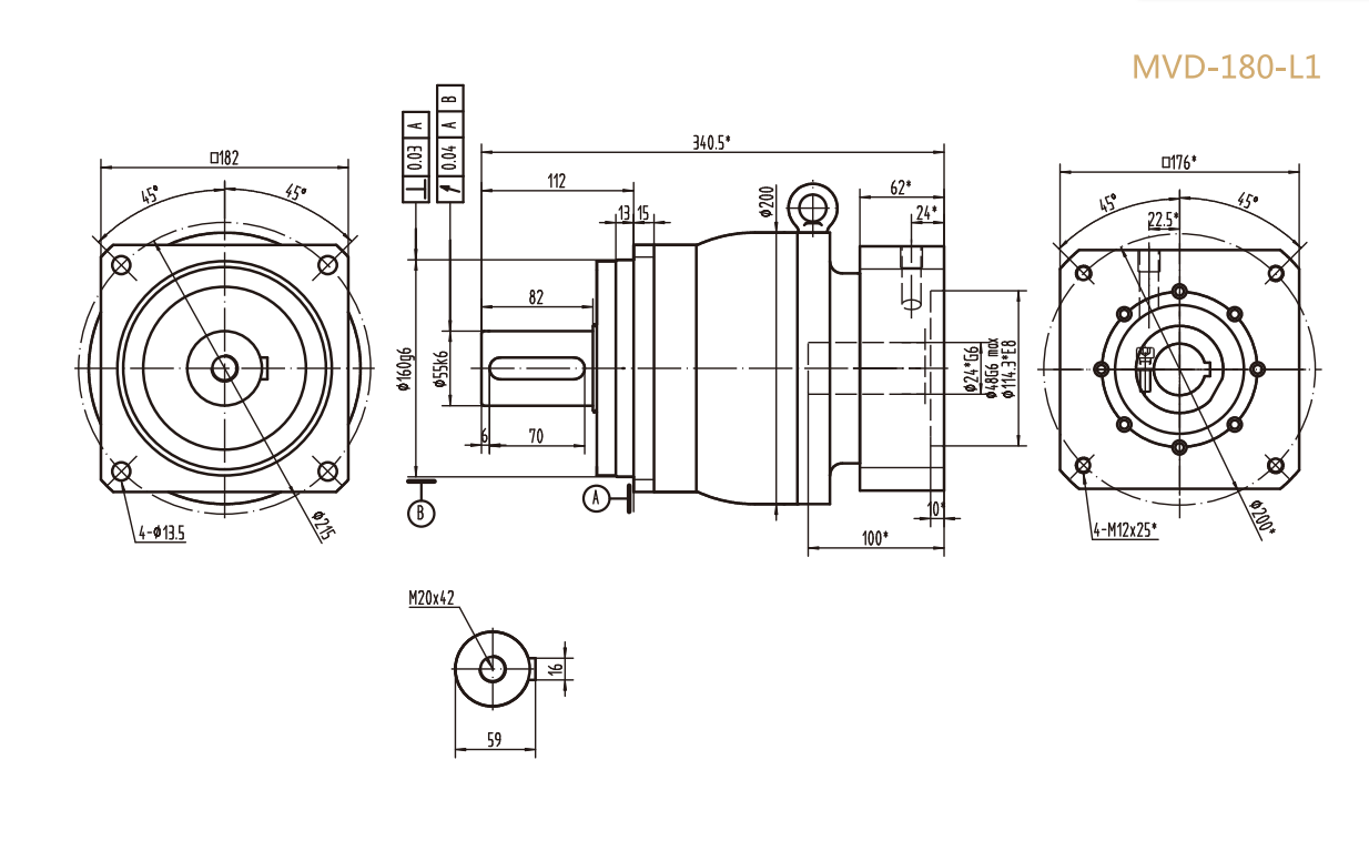 然后,根据负载扭矩和减速比,查阅 MVD-180-L1 系列减速器的选型手册,选择能够满足要求的型号,假设选定型号为 MVD-180-L1-10。