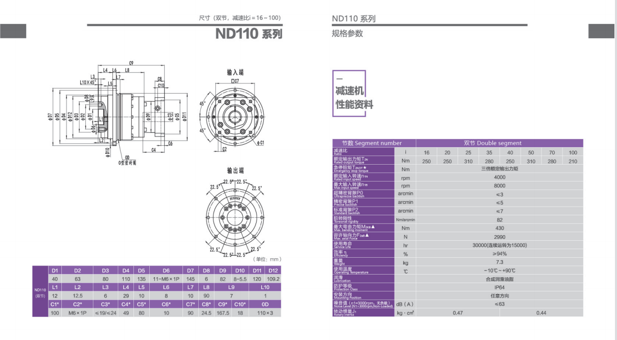 ND110系列超精密背隙行星减速机系列:ND110系列精密背隙行星减速器系列:ND110系列标准背隙行星减速机系列: